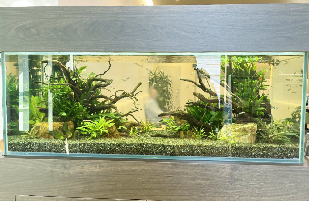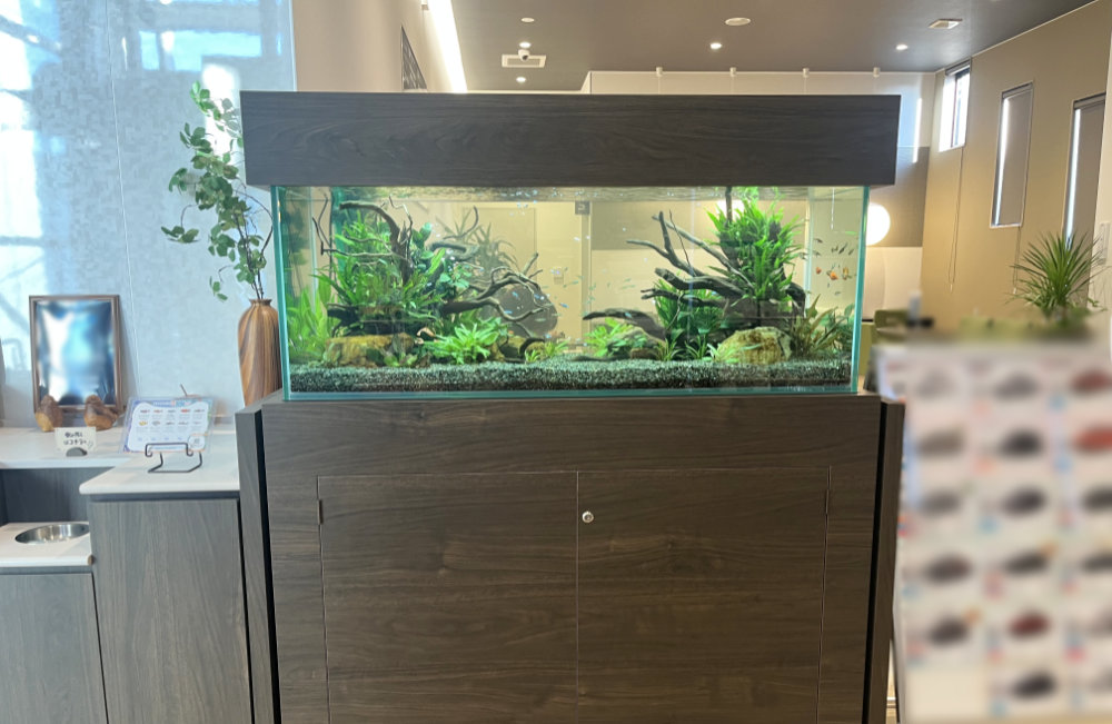 自然の水景を切り取ったようなアクアリウムは、待合スペースをほっとひと息つける空間に変えてくれる、特別なインテリアとなりました。