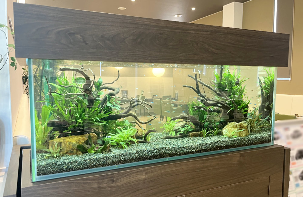 京都トヨペット株式会社・宇治店様に設置!120cm淡水魚水槽レンタル事例